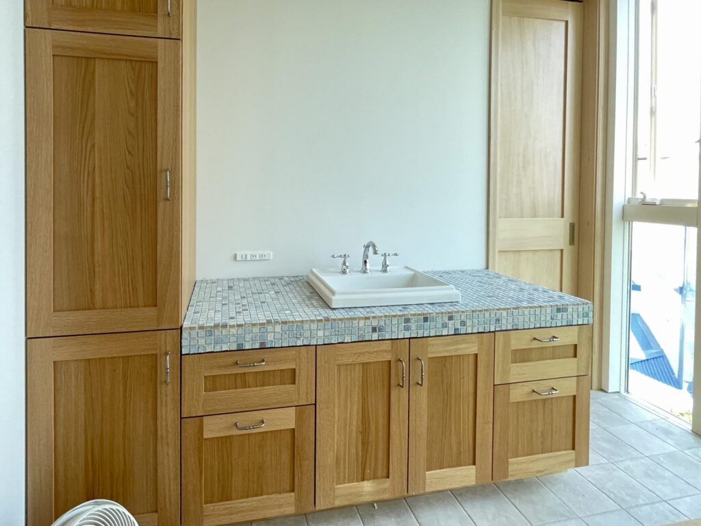 ここでも既製のシステムキッチンやセミオーダーキッチンにはできない幅・高さ・奥行きを1mm単位で作る、