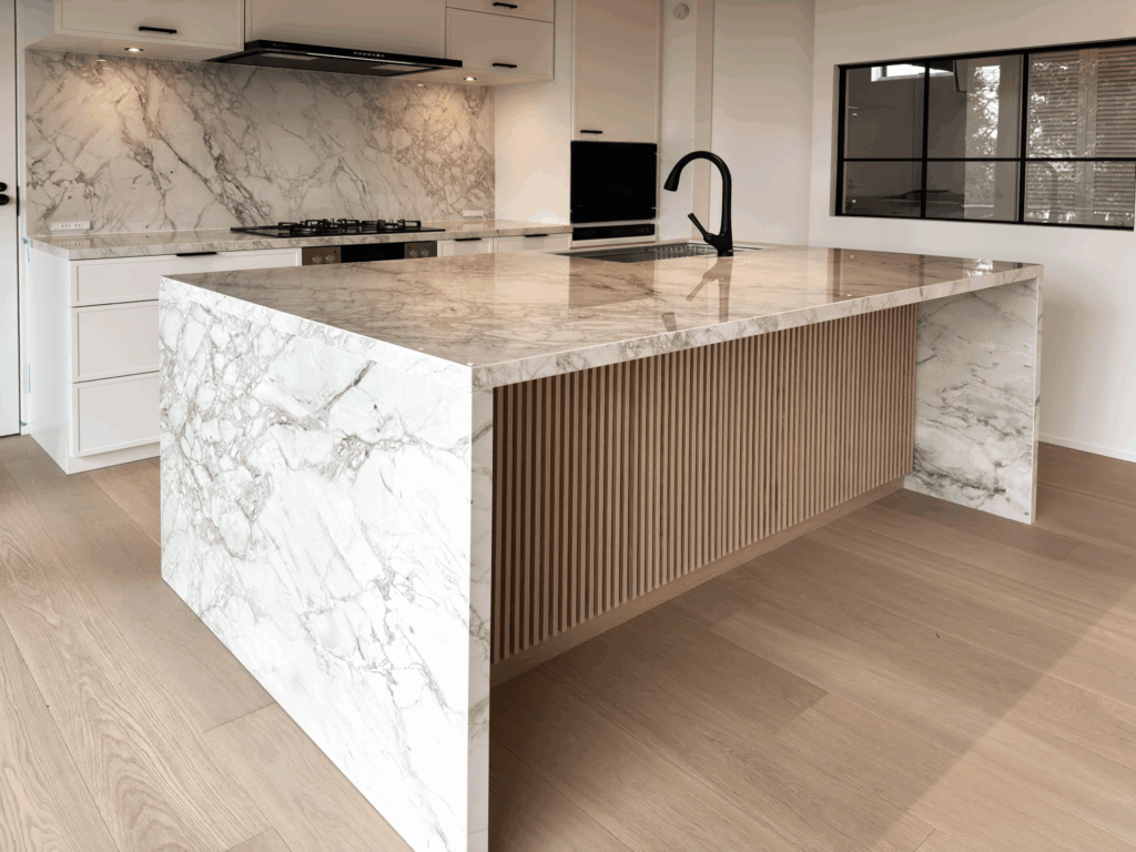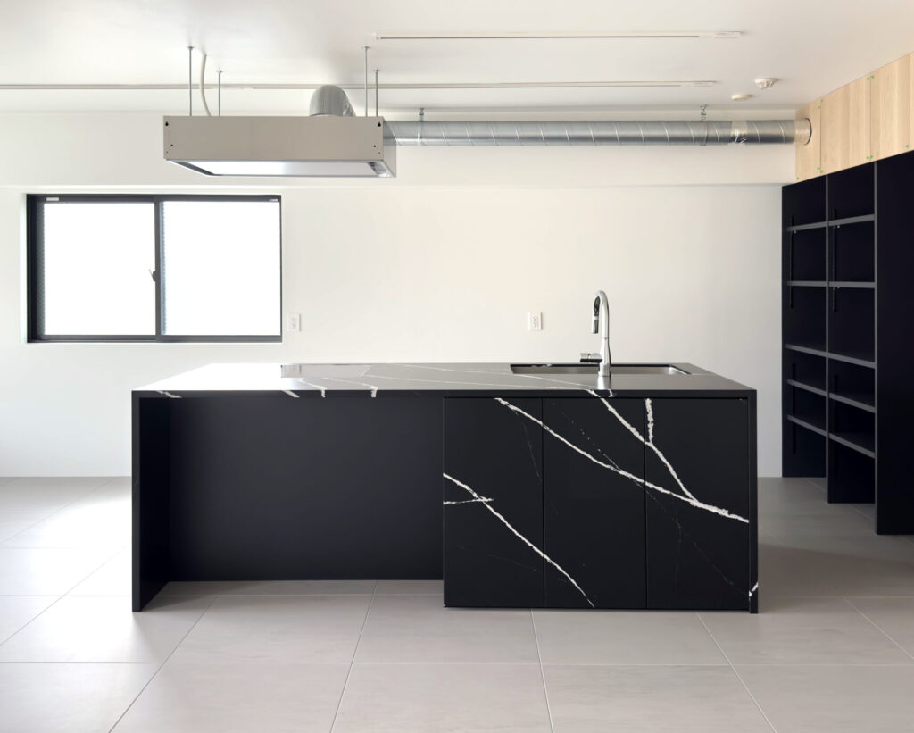 重厚感とモダンな高級感を両立できるため、国内外でキッチン天板やアイランドキッチンに多く採用されています。