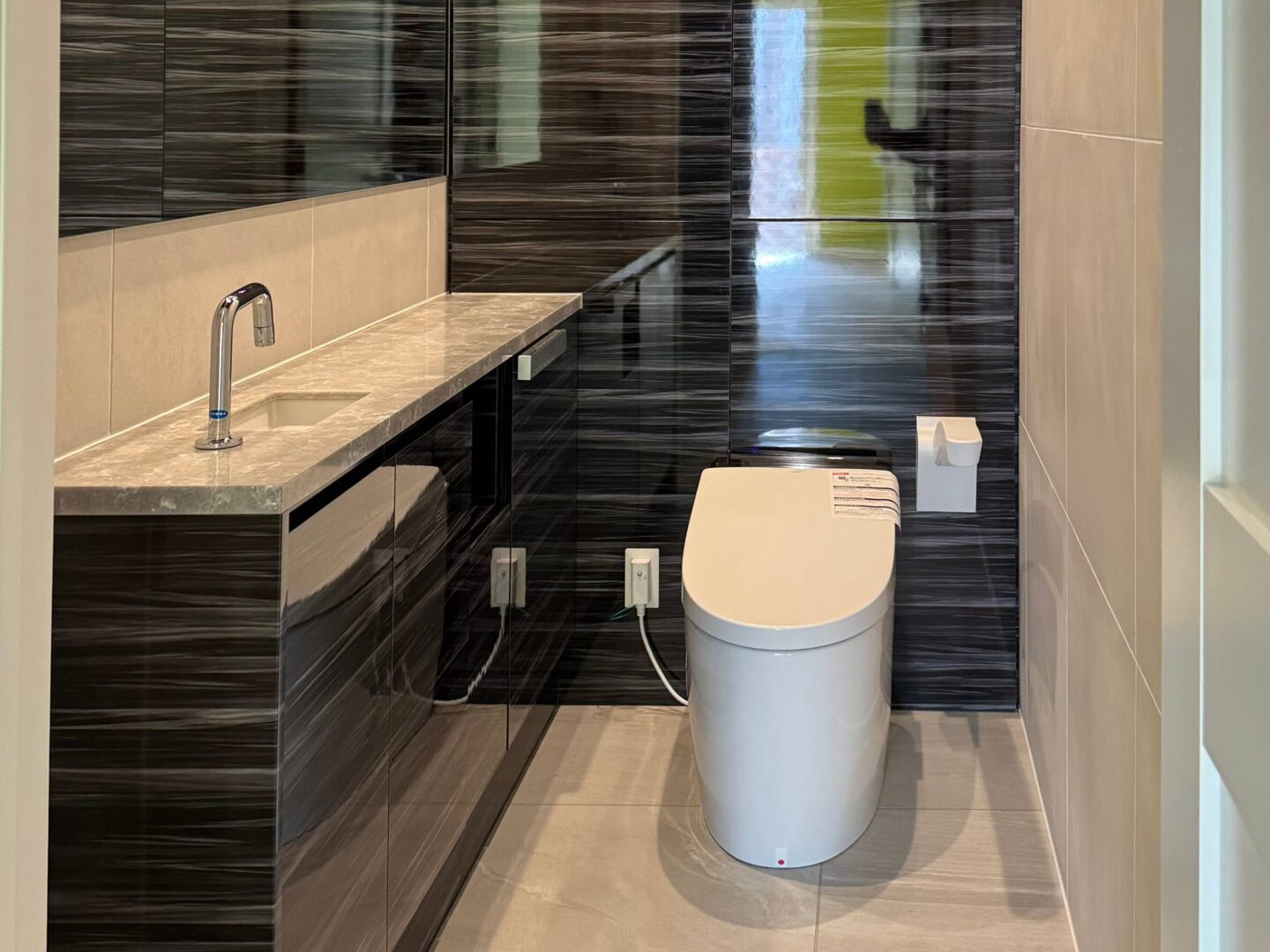 洗面化粧台|壁面に貼ったセラミックで更におしゃれに
