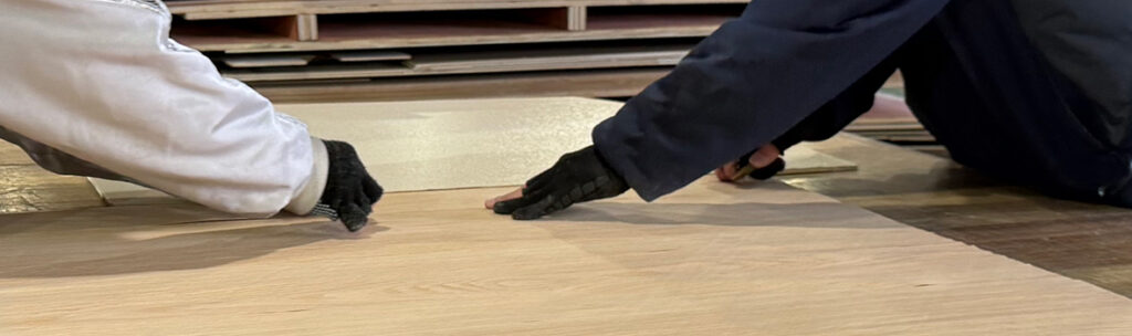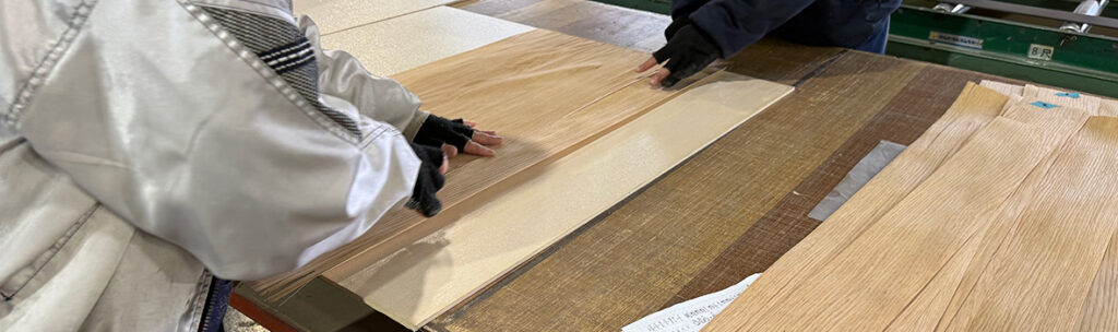 ツキ板(突板)とは、天然木を薄くスライスし、安定した下地材に重ねることで成立する木材表現の技法です。